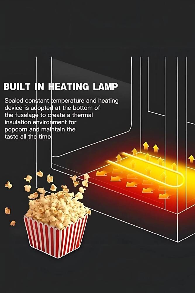 Paslanmaz çelik ve cam malzemelerden üretilen dayanıklı gövdesi, şık ve sağlam bir kullanım sunar. Sadece 2 dakika içinde mısır patlatma özelliğiyle hız ve verimlilik sağlar. 51 x 35 x 68 cm boyutlarındaki kompakt tasarımı ve 16.2 kg ağırlığıyla kolay taşınabilir, her ortama uyum sağlar. Lezzetli ve taze patlamış mısır keyfi için mükemmel bir tercih!